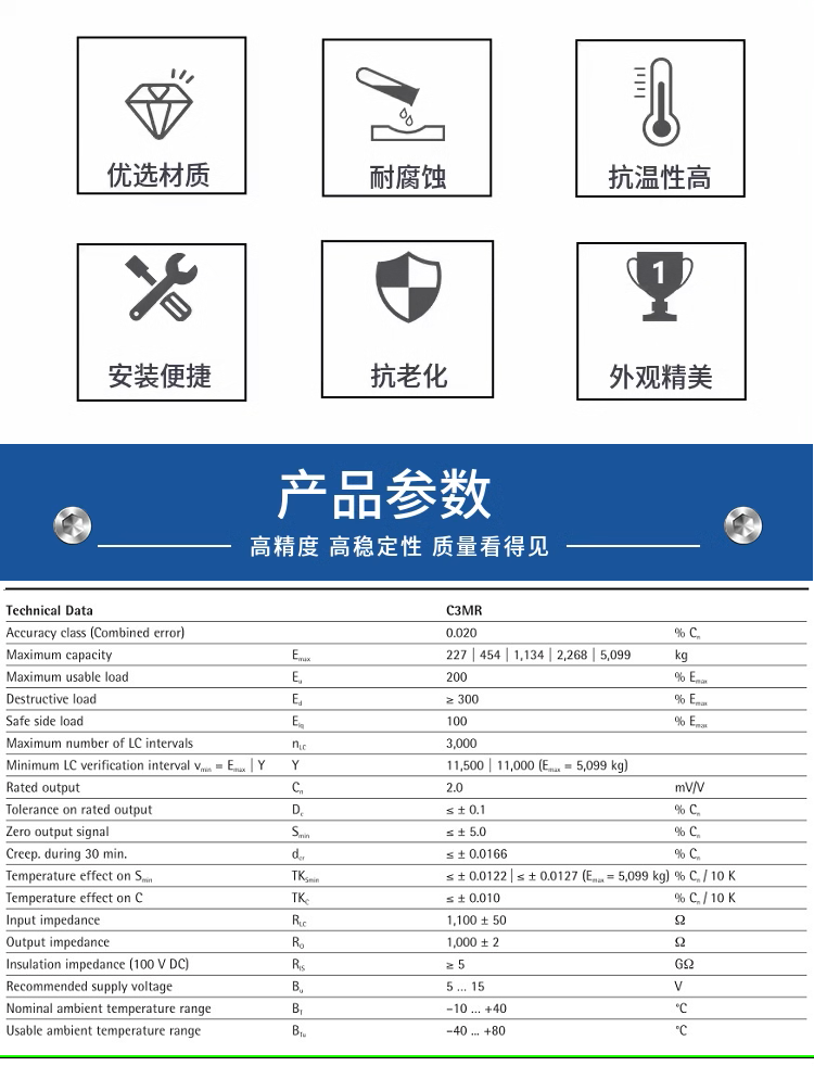 提供多种形式的连接件。可以根据不同的称重系统结构,直接选择合适的连接件,确保重量准确合理地传递到称重传感器,保证测量精度