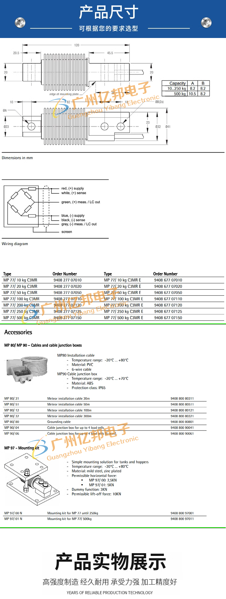 ● 量程范围:10,20,50,100,200,250,500Kg